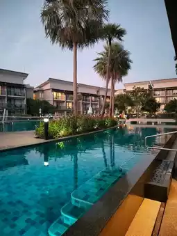 This beachfront resort boasts a beautiful beach and the perfect weather. The beach behind the resort is perfect for swimming, and there's a beautiful swimming pool.