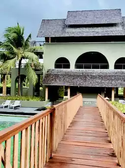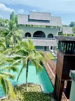A large resort located on Bang Sak Beach. This tropical-style resort features a large swimming pool that runs the length of the hotel. Every room has a view of the pool. This time, I stayed in a deluxe room. The room was divided into two zones: a lounge area and a sofa bed for relaxing. The balcony offers a relaxing view of the pool. The room has a bathtub and a spacious bathroom. From the room, you can walk to Bang Sak Beach and the beach for swimming. Breakfast offers a decent variety. However, the staff are mostly foreigners, with few Thais, which makes the service a bit disappointing. Overall, the service was okay.