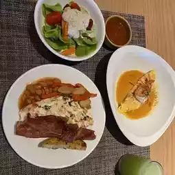 Starting with salads and sausages, bacon, bread, and delicious omelets, followed by hot dishes with a variety of Thai dishes, including pasta and noodles. The children would probably scream for desserts like Mafin waffles and pancakes. #staycation #accommodationbythesea #missnature #southernteam #checkinbythesea