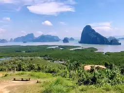 Phang Nga Bay's Samet Nangshe is a spectacular panoramic viewpoint. It's a little outside of Phuket island, but it's worth the trip if you have a car or a big bike. The beautiful limestone formations of Phang Nga Bay may be seen from up there, but it takes some effort.