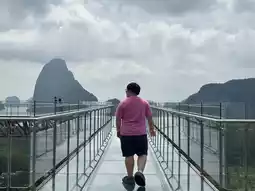 Skywalk Samet Nangshe is a new tourist attraction that anyone visiting Samet Nangshe must check in at. At the top, there's a U-shaped glass bridge that's crystal clear. Before walking on it, everyone must wear shoe covers to prevent scratches on the glass. You can take pictures from every angle. The breeze at the top is cool and refreshing, combined with the stunning view, making it perfect for photography. There's also a restaurant and beverage service available.