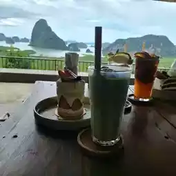 So took the opportunity to visit Phang Nga Province. This time, we stopped by Samet Nang Chee Viewpoint. It's very beautiful. The price of drinks is not too expensive. But there is an entrance fee to the place.. There is a free shuttle to go up..