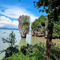 Ko Tapu, also known as Ko Tapu, is a small rocky island located in the northern part of the bay of Ko Khao Phing Kan, southwest of Ao Phang Nga National Park in Kalai Subdistrict, Takua Thung District, Phang Nga Province. It is approximately 15 kilometers from the park office along the Ko Panyi Canal. Ko Tapu is a solitary island with a bulging top and a narrow base, resembling a crab's eye. (In geological terms, such an island is called a 'stack.') Viewing Ko Tapu must be done from a distance, either from a boat or from the sandbar of Ko Khao Phing Kan, as it is not possible to set foot on the island.
