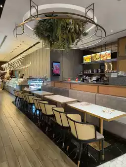 When we got to the top, there was a restaurant and a cafe area. We chose to go up to the cafe area to see a higher view first, then walk down to the restaurant below, which had an equally beautiful view. We chose to come at four in the afternoon to see the view at two times. We liked the time when the sun was setting. The sky was beautiful and the colors were gradients, which is hard to find in a big city.