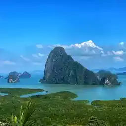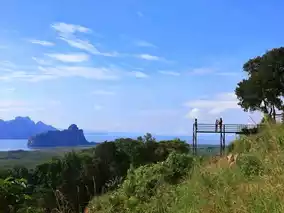🚩 This viewpoint is located in Ban Samet Nang Chee, Khlong Khian Subdistrict. It is a viewpoint on the top of an 800-meter high mountain, allowing you to see the beautiful nature in Phang Nga Bay as far as the eye can see. There is a parking lot and a shuttle service. The fee is 90 baht per person (the route is quite high and steep). However, if you walk up by yourself, there is a 30 baht maintenance fee per person.