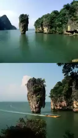 🪨 Khao Tapu 📸 A prominent landmark known as "James Bond Island" from the famous movie, it's notable for its towering limestone cliffs standing prominently in the water. A boat trip to Khao Tapu, complete with stops at Tham Lod and Khao Phing Kan, is a fun and immersive experience close to nature.