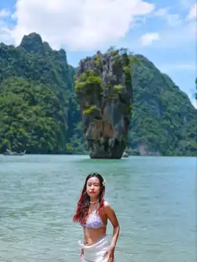 Khao Tapu (also known as James Bond Island) is a limestone island characterized by its prominent top and narrow base, resembling a nail. Formed by thousands of years of sea erosion, it was originally connected to the mainland and formed an island. The island was eroded by seawater, creating a prominent rocky island. Khao Tapu is world-famous for being the setting for the James Bond film "The Man with the Golden Gun," making it a major tourist attraction in Ao Phang Nga National Park. #KhaoTapu #PhangNgaBeautifulCityInTheValley