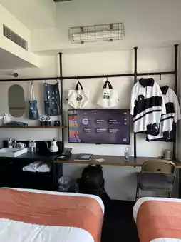 🩴 The room amenities, such as sandals and hangers, are designed with cycling and bicycles as motifs, which adds to the excitement.