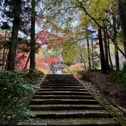 There are a few steps up to the temple grounds. There are clean restrooms, so you don't have to worry. It is compact, but the autumn leaves were a wonderful gradation.