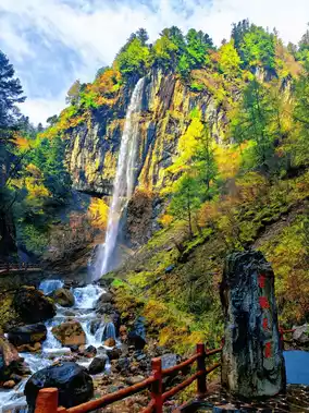 Walking along the soft path covered with fallen leaves, every step echoes the rhythm of autumn. Turning around a mountain pass, you suddenly encounter a waterfall—the autumn water no longer rushing wildly but turning into silver threads, embroidering a flowing painting among the colorful forest.