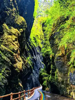 Standing on Lover’s Bridge and looking down, the entire gorge looks like a palette spilled by Van Gogh—ochre, gamboge, vermilion, and indigo flowing and blending among the mountains. Sunlight pierces through the mist, gilding every leaf as if thousands of butterflies are fluttering their wings, scattering light all around. The most stunning sight is Mirror Lake, which fully embraces the autumn colors in the sky. The reflection on the water is even more vivid than the real scene, as if the sky and earth are holding a competition of colors.