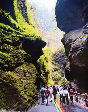 Reaching Wupu Gorge, we truly touched the "water soul" of Guanzhu Gorge. The five waterfalls are connected yet each has its own character: some are as fine as silver threads, hanging from the cliff top and spraying mist throughout the valley; others rush like wild horses, crashing against rocks and shattering into thousands of jade beads, with the air filled with a crisp dampness. The plank road beneath our feet was moistened by the mist, cool to the touch, and every step sounded like walking on water, as if silently agreeing with the mountains and water.
