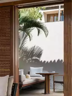 It also has an open-air courtyard bathtub, and you may encounter strolling peacocks in the early morning.