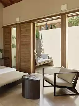 Designed by master architect Kerry Hill, the rough cement walls + teak shutters and the light and shadow cut out a Zen space. The reflecting pool in the center of the lobby is seamlessly connected to the sea level. During the rainy season, clouds and mist will fill the corridor. All furniture is custom-made with Sri Lankan ebony, and even the keychains are bronze replicas salvaged from shipwrecks.