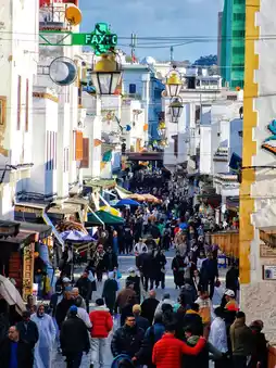 At dusk, the setting sun paints the old town and the coast a warm golden hue, its shadows extending across the alleyways and sea. A gentle breeze caresses the waves, and time seems to slow down. Truly breathtaking, it's after nightfall, when lights illuminate the alleyways and old town's contours. Tangier whispers a story of history, the gentle sea breeze, and North African life.