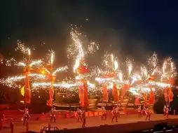 On regular days, there are only two performances of the Tang Emperor's Eastern Expedition. I chose the 6:30 PM show and was initially worried it might be too bright outside, but it turned out to be perfect. In summer, I recommend choosing the 8 PM show for a better experience. I must say, from the warm-up host interactions and acrobatics to the main performance, everything was spectacular. The visual impact of the intangible cultural heritage iron flower display is beyond words—you have to experience it yourself!