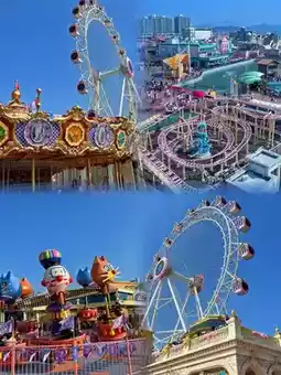 Numerous children's play facilities. Kids rode the Dragon Train, shadow puppet carousel, operated mini excavators, and laughed at funhouse mirrors - didn't want to leave!