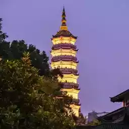 Climbing the tower gives you a peaceful view over the lake, willow trees, and walking paths below. Locals often sit nearby playing erhu 🎻 or enjoying tea by the water. At night, the tower glows softly under lantern light, its reflection shimmering on the surface — pure serenity.