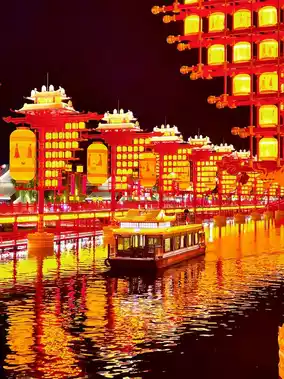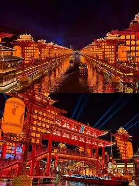 3. Sightseeing boat experience: Take a boat from Prosperous Wharf to Huifeng Lake Yuanzun Wharf, stand at the bow on the second deck, watch the pavilions and lights reflecting on the water on both sides, the atmosphere is fully immersive and breathtaking;