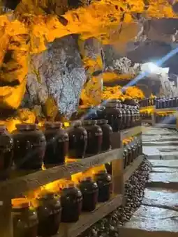 Following the staff, we visited the Jiuxin Cave Wine Cellar. The wine cellar, with its unique geographical location and natural cave storage conditions, produces fine wines with unique flavors. The air circulation in the cave is slow and the temperature is constant, which is very suitable for the growth of microorganisms. Its special ecological environment has obvious effects on purifying the wine body, increasing the mellowness of the wine body, and sublimating the quality of red wine. Tourists picked up their glasses and tasted the blueberry wine from Tangwang County.