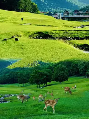 - Spotted deer and elk roam freely in meadows and forests, with Japanese-style gardens perfect for photos.