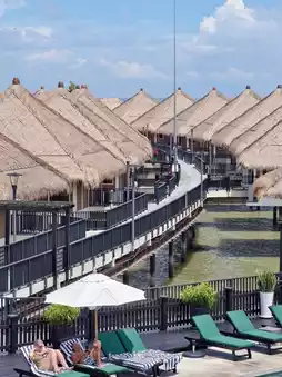 • An overwater resort with tropical ambience and resort-scale variety—great for those seeking beach-side luxury without international travel.