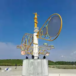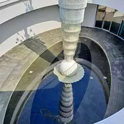 The landscape art in the atrium is inspired by the sound of Hakka people blowing conch shells. Any photo you take here will look great!