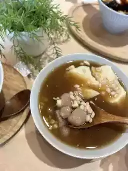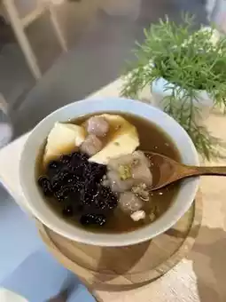 If you want to refill the bowl of hot tofu pudding, you can refill the hot tofu pudding and hot brown sugar soup base.