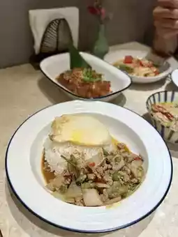 .*/Rice with fried meat and basil leaves (with egg) $160