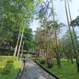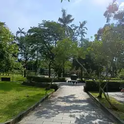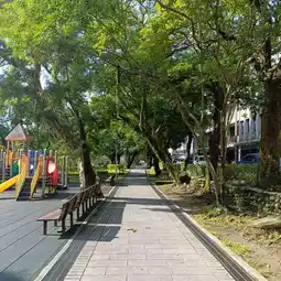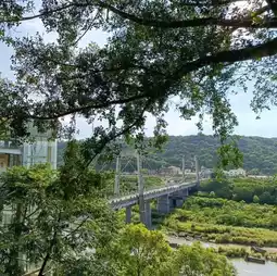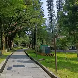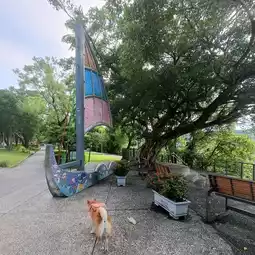 It has rich natural landscapes, large grasslands and tall trees, as well as a variety of installation art. You can see sailboats, large gyroscopes and other landscaping. In the middle of the park is the Gyroscope Square, with an elevator that takes you to the Daxi Bridge below. The entire park is very large, and you can directly see the Dahan River from the park. The ecological environment is well protected, and you can see squirrels and many different plants.
