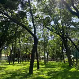 The building located in Bade Danan Forest Park has a distinctive appearance, but it cannot provide shade. After visiting and walking around, you can take a rest under a big tree. There are many wooden chairs to enjoy the cool.