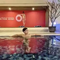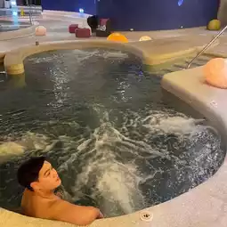 Here there is a swimming pool and many onsen and jacuzzis to soak in. There is also a steam room, sauna, and fitness center. I like it very much.