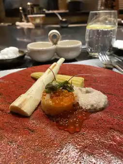 Hokkaido scallops with wild salmon roe: The scallops are very refreshing when eaten in one bite, and paired with truffle sauce, it is super flavorful ⭐️⭐️⭐️⭐️⭐️