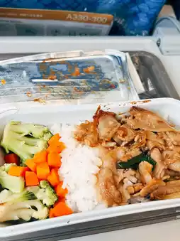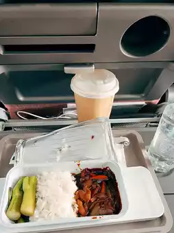 The return CX420 was a 3/3 small plane and was fully occupied. The flight from Taiwan to Hong Kong takes less than 2 hours. Shortly after takeoff, the flight attendants will start serving meals (yes, Cathay Pacific still provides in-flight meals on short flights), but there is only one choice (pork rice on the outbound flight/chicken rice on the return flight), and there will be no beverage cart. If you have special needs, you need to register in advance, just like other airlines.