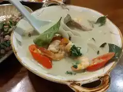 It contains clams, many small shrimps, soy sauce and other ingredients. The green curry is very spicy~ You have to drink a big sip of Thai milk tea after eating one bite QAQ Friends who like spicy food can try it