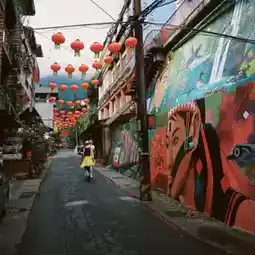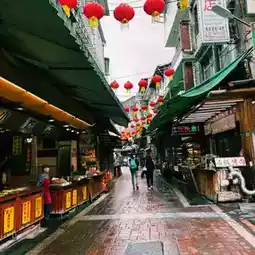 You can walk up there, but it's quite far. The most popular and less tiring way is by tram. We walked up, but an old lady rode a motorbike and invited us to go up. Taiwanese people are so nice.