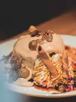The soufflé is solid yet dense, with a perfect balance between tea and milk aromas, and the pearls are chewy, making it a very successful dessert.