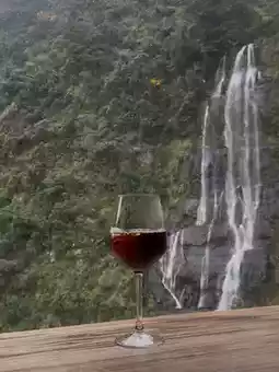 To reach the café, we made our way up a few flights of stairs, but the effort was easily rewarded. As we entered, we were greeted by a breathtaking view. The café’s floor-to-ceiling windows looked out over the Wulai Waterfalls, the perfect backdrop for sipping coffee. The waterfall, cascading gently down the rocks, added a sense of tranquility to the experience. The calming sound of the water and the soft background music inside created an atmosphere that felt both refreshing and peaceful. It was the kind of moment you wanted to savor, where everything around you seemed to slow down and become a bit more serene.