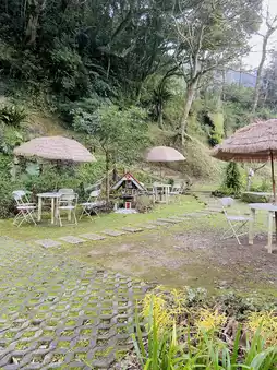If you come on a weekday, there won't be too many people, allowing you to leisurely enjoy a cup of coffee under the cherry blossom trees, take beautiful photos, and soak in the tranquility of this mountain forest secret spot. The overall environment is fantastic, perfect for those looking to relax and enjoy nature!