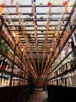 Since 2017, the shrine has been revitalized and managed by businesses, featuring attractions like the wind chime tunnel and the ema wall, making it a popular spot on Instagram. On weekdays, there is a single version of the goshuin (shrine stamp), currently the cherry blossom version. On Sundays, in addition to the shrine market, a calligraphy teacher is invited to handwrite goshuin. For those collecting goshuin, this is not to be missed.