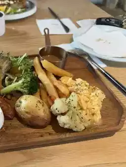 Then, the main course "Classic Double Thick Bacon" was served. The meal is served on a wooden plate, filled to the brim with colours that will whet your appetite. There is a golden grilled sausage on the wooden plate, accompanied by thick-cut bacon, exuding an enticing aroma. On the side was a small portion of scrambled eggs sprinkled with fresh herbs, which had a smooth texture and melted in your mouth. There were also a few crispy fried French fries, paired with a small cup of tangy sauce, which added a bit of interest. There was also a small salad on the wooden plate, which contained fresh lettuce, tomatoes and shredded carrots, topped with a refreshing vinaigrette, which balanced the overall greasy feeling.