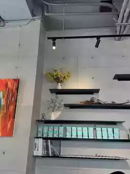 The store's decoration style combines modern and natural elements. The exposed ceiling and industrial-style ventilation duct design contrast with the wooden walls and warm lighting, yet coexist harmoniously. The open shelves behind the counter are neatly arranged with tableware and coffee utensils, revealing the store's attention to detail. The sign at the entrance reads "Sót Càphê Bistro 禾林浮岛" in both Chinese and English, and there is also a line of words "Waiting Area", which makes it look international and friendly. There is also a Duskin disinfection machine next to it, which shows the store’s emphasis on hygiene and safety, making people feel at ease.