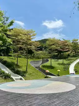Da You Terrace Ecological Park offers ecological education features such as the water piggy bank and ecological pond. It also has kids' favorites like the retro-style embedded terrazzo slide, a sand play area, and a water play pool. In the evening, there are outdoor mosquito cinemas and a music theater.