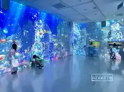 The entire exhibition presents a dreamy vision with the theme of "Ocean of Light". Light and shadow flow and interweave in the space, making people feel as if they are diving into the deep sea. Fish, corals, and turtles slowly swim in the flashing lights, and the children can't take their eyes off!