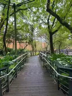 The most eye-catching thing in the park is the "Owl Tree House Observation Deck" hidden between the big trees. The entire platform is built along the old trees, as if walking into a fairy tale book. Symmetrical stairs on both sides lead to the sky. The wooden steps are combined with black iron railings, and the green leaves all over the sky make walking up very ceremonial!