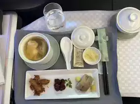 I had already selected my meals online: Lao Ganbei premium Japanese A5 Wagyu beef with rice and Din Tai Fung xiaolongbao with a bowl of chicken soup.