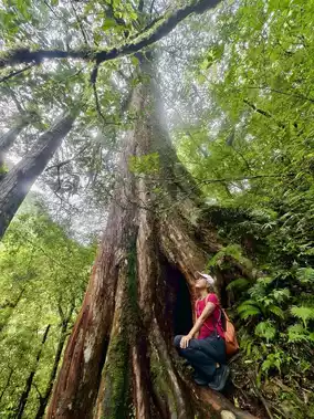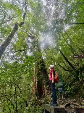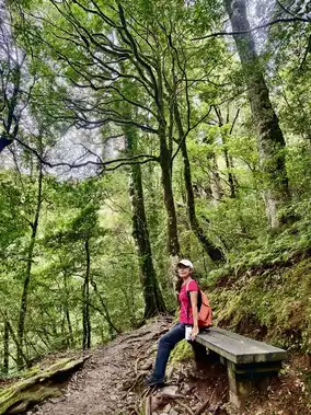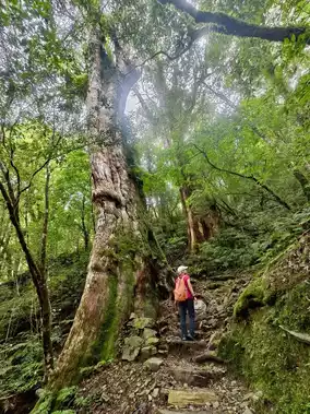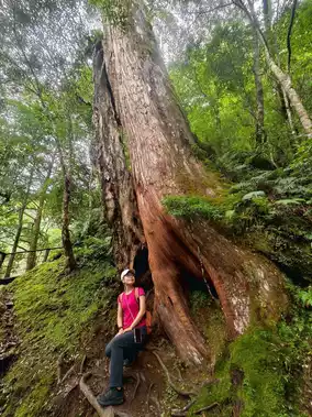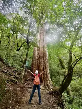 The morning after the rain makes the entire mountain forest even fresher. The air is still filled with the fragrance of cypress and soil. Walking along this forest trail, my mood naturally becomes relaxed and joyful.