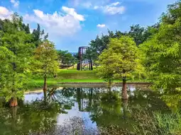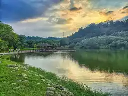 Located in Longtan District along the banks of the Dahan River, Taoyuan's Sankeng Natural Ecological Park spans approximately 3.8 hectares. This eco-friendly park is designed with ecological construction methods and features expansive lawns, an ecological lake, and a lakeside trail. Its iconic landmark is the Japanese-style floating thatched hut known as "Fucao-an." During summer, the shallow water channel created by diverted river water becomes a popular spot for families to play. The park also includes pavilions, wooden arch bridges, and landscape art, making it ideal for picnics, leisurely walks, and cycling. Adjacent to Sankeng Old Street, visitors can plan a day trip combining nearby attractions.