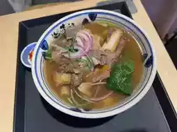 The beef noodles are a combination of ingredients, with a wide variety of toppings. The broth is smooth, yet distinct from the traditional clear stew. A real treat!