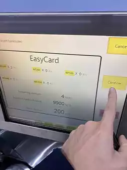 Then, when you reach the end of the road, walk down the escalator 1 floor and you will see a sign for the station. Walk in and go straight to the automatic machine. Press to buy an Easy Card for traveling by train, metro, bus and can also be used to buy things in various shops. The first time you buy a card, the minimum is 500 NTD. The card is valid for 20 years. If you don't use it all, you can save it for the next trip or use it for shopping on the last day.